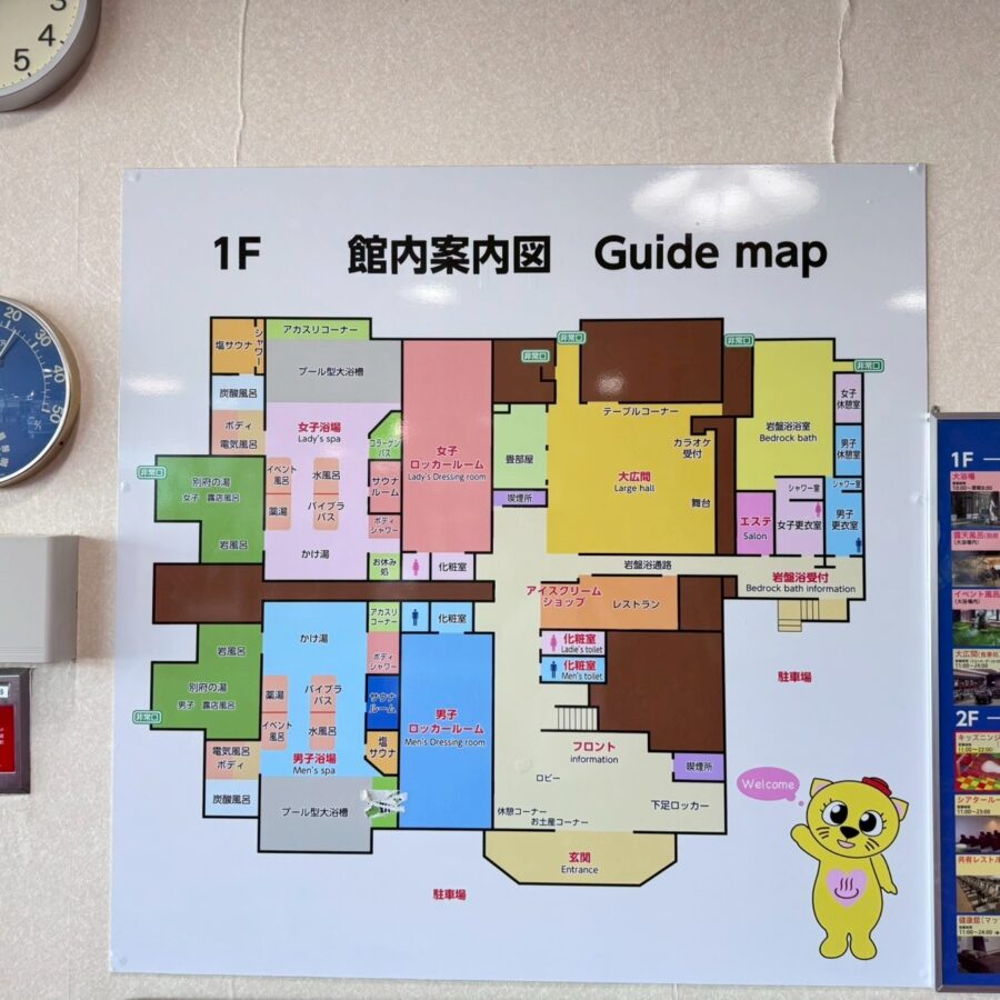 浴場内の細かい構成はマップを参照して頂ければと思うが、個人的な注目ポイントは内湯にある温水プールと露天にある別府の湯だ。